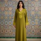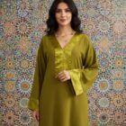 عباية أنيقة باللون الأخضر الزيتوني بتصميم راقي ولمسة فخامة في التفاصيل.